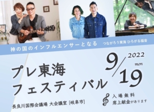 2022/9/19(月) 13:00–15:40 『プレ東海フェスティバル 』~ 神の国のインフルエンサーとなる ~ つながろう東海 ひろがる福音 メッセージ:川村真示師(岐阜キリスト教会牧師) 開催地委員より JCE7 プレ東海フェスティバル メッセージ 川村真示 この記事が気に入ったら いいねしてね! よかったらシェアしてね! URL Copied! URL Copied! 【動画公開】プレ東海フェスティバル・ハイライト 開催地委員会への献金 関連記事 【終了】東海宣言(仮称)作成のためのアンケート 2022.01.25 【動画】会場への行き方 2023.09.01 プレ東海フェスティバル[2022/9/19] 2022.06.22 東海合同礼拝のお知らせ 2023.07.04 JCE7連絡フォームにご登録ください 2022.10.26 JCE7宣伝用パワーポイント&チラシ 2022.01.25 【動画公開】プレ東海フェスティバル 2022.09.02 【動画公開】東海フェスティバル&JCE7 ハイライト 2023.09.22